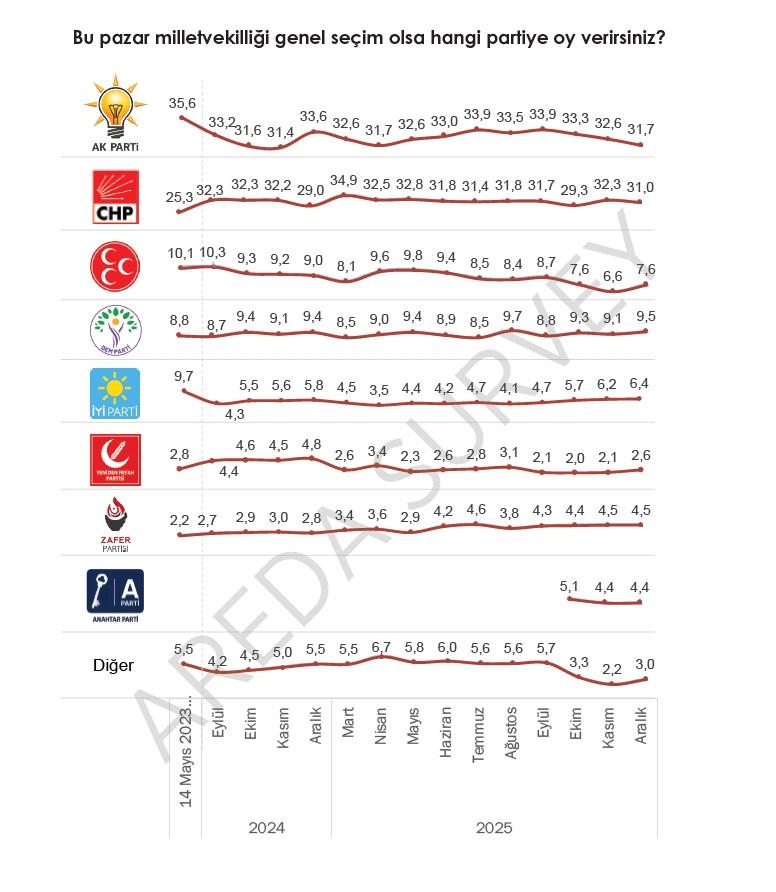 Areda Survey’in 2025 Aralık kamuoyu araştırma sonuçları yayınlandı.