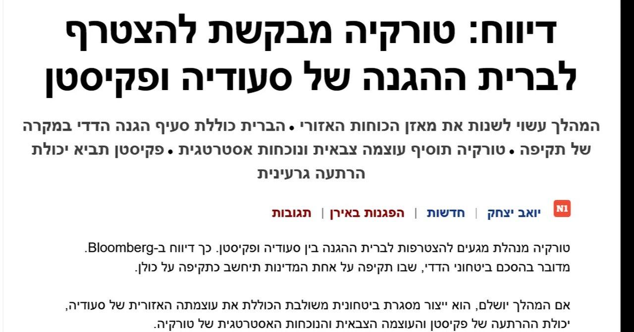 İsrail basını, Türkiye’nin Suudi Arabistan ve Pakistan ile kurulması planlanan savunma ittifakına katılma ihtimalinin Tel Aviv için önemli bir tehdit oluşturduğunu yazdı.